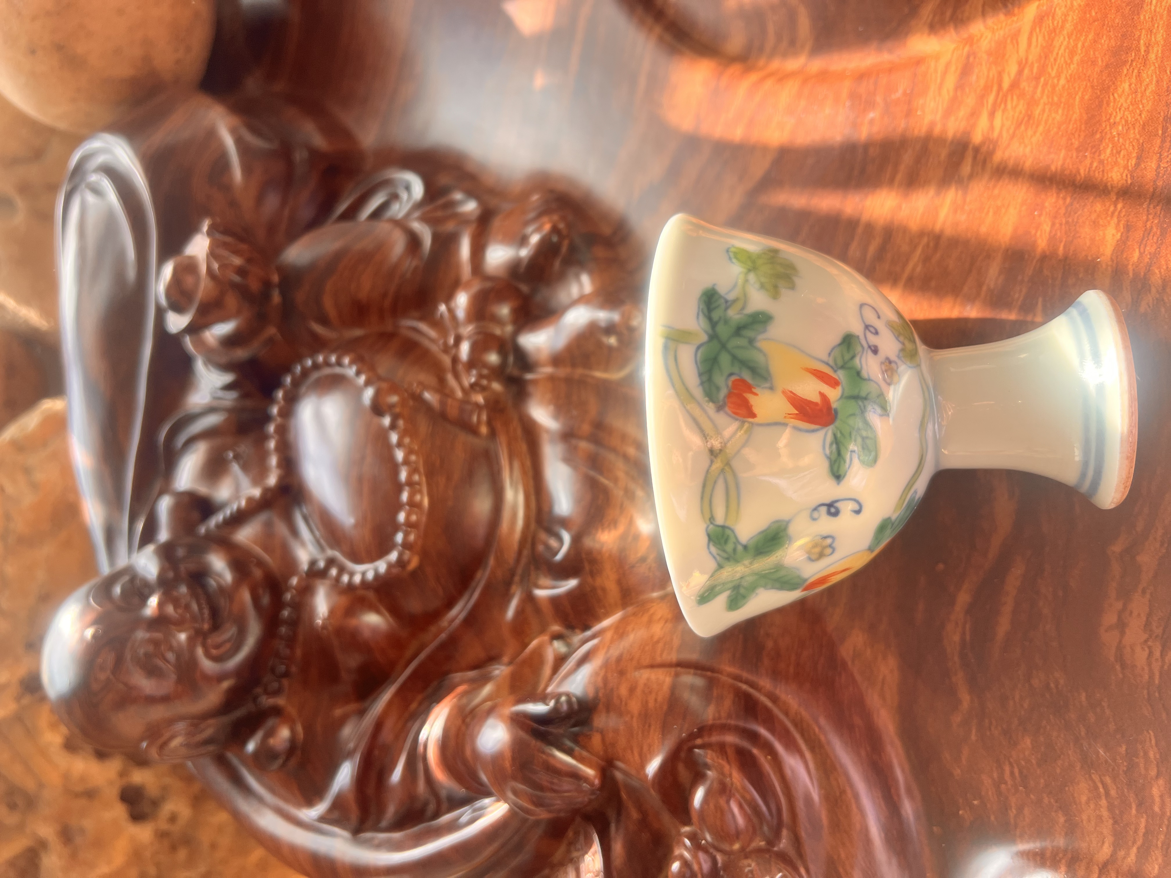 花鸟纹:明成化青花斗彩花鸟纹高足杯的外壁以青花斗彩技法装饰花鸟纹样,笔触纤细工致,青花发色淡雅柔和,将花鸟的神韵展现得淋漓尽致。存世稀少,凸显珍贵价值成化斗彩瓷器本就因作为帝王用器、成品率低(次品销毁)等原因而存世稀少,而这类带有特定题材的高足杯更是罕见。例如,成化斗彩鸡缸杯等存世量极为有限,类似的高足杯在市场上的流通品也十分稀缺,正所谓“物以稀为贵”,其珍贵程度不言而喻。