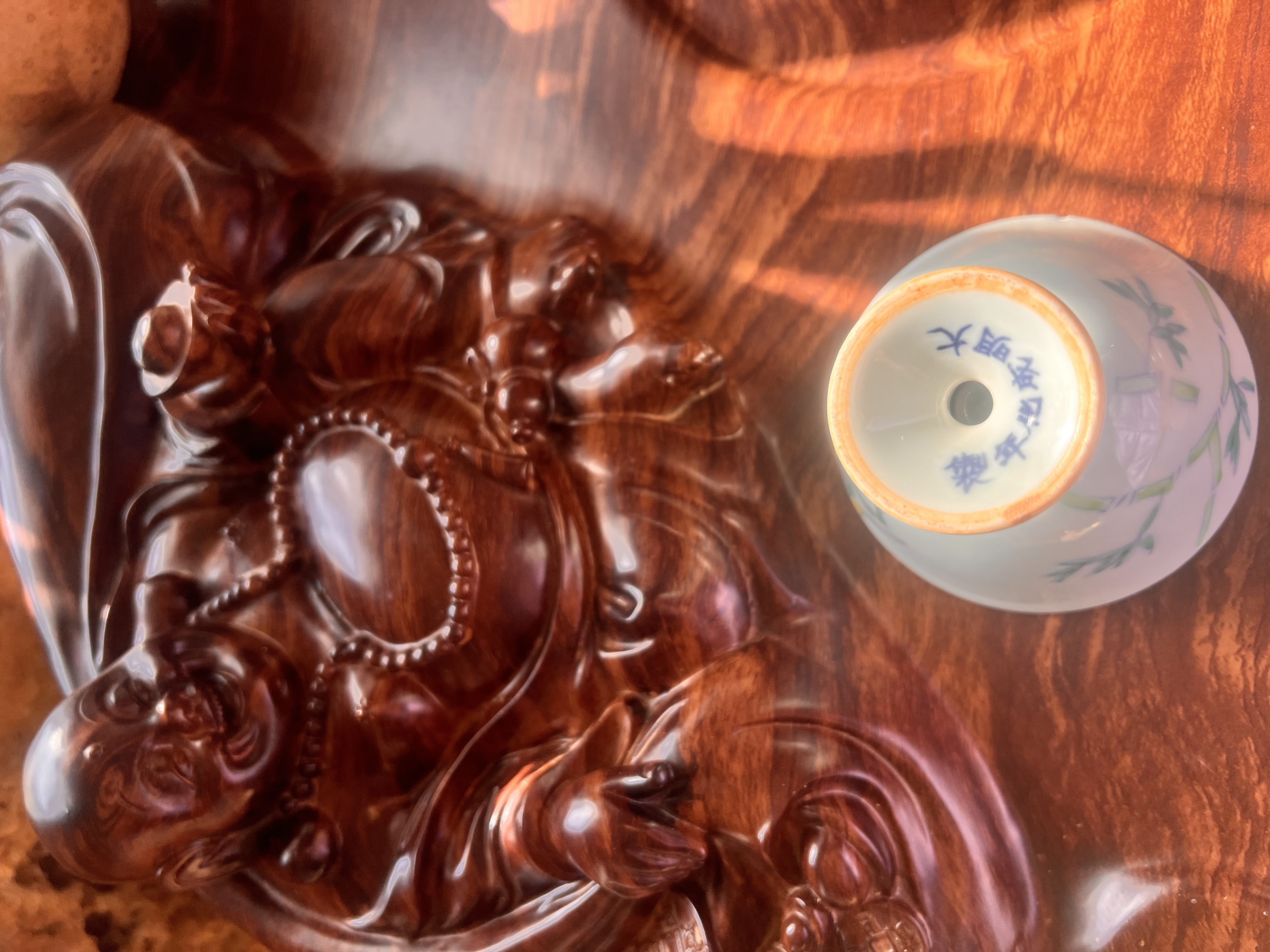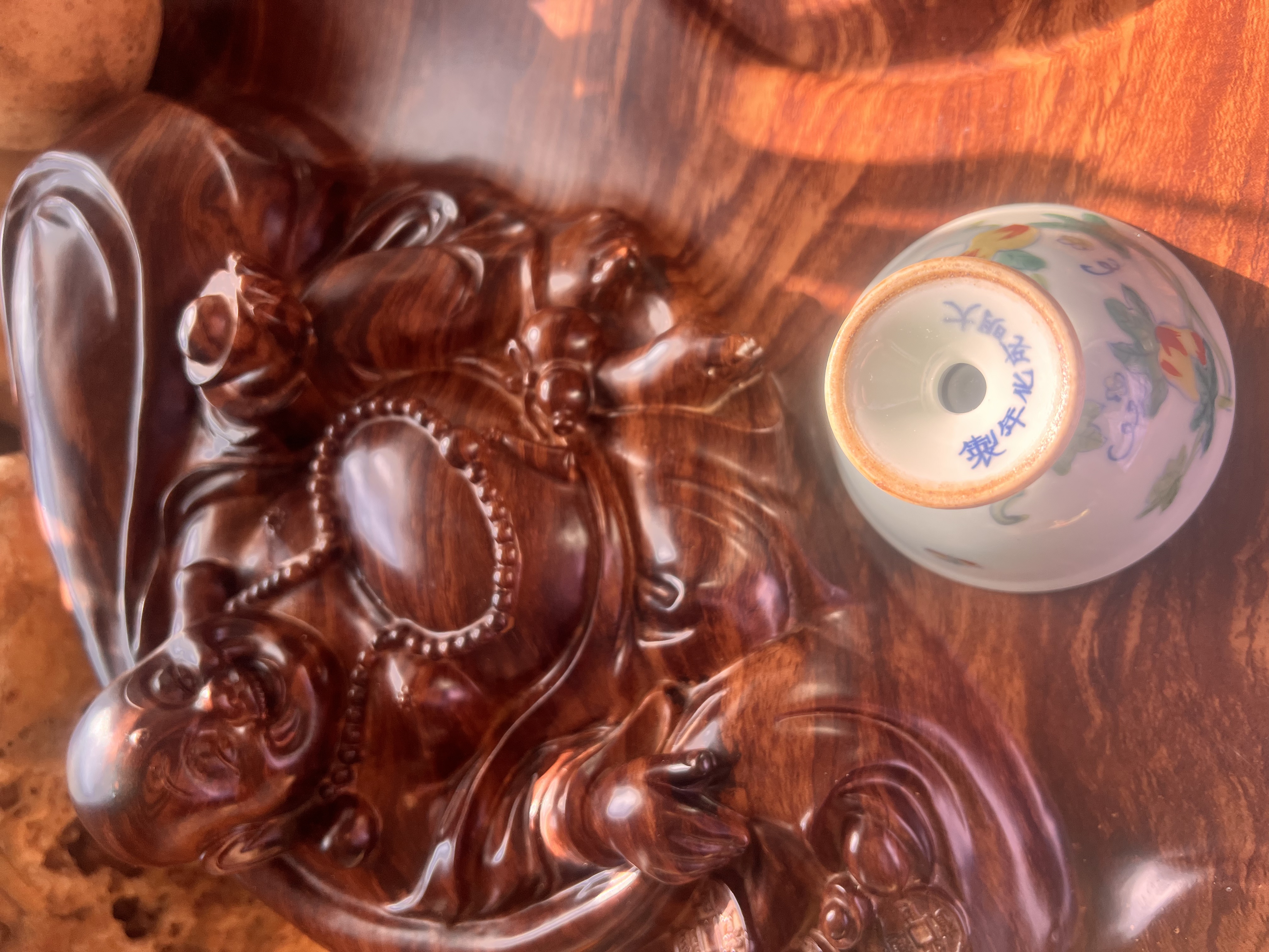 其胎质与釉质堪称一绝。胎体轻薄得近乎透光,轻轻托起,仿佛能感受到历史的轻盈。釉质莹润如玉,散发着柔和而迷人的光泽。底部露胎处呈现出典型的“糊米底”特征,更增添了几分古朴韵味。胎质细润晶莹,如同温润的美玉;彩料精选纯正,色调柔和宁静,绘画风格淡雅幽婉,每一处细节都彰显着非凡的品质。