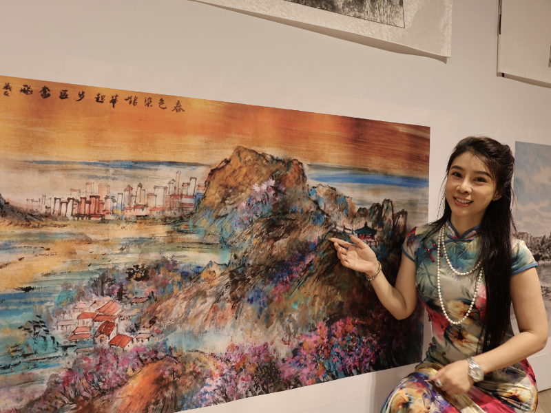 展览现场除展出中新艺术家联手创作的《鹊华春色图》之外,还呈现了多幅展现济南自然风光与发展新貌的书画摄影作品。两国艺术家以笔墨和色彩为媒介,将济南的山水灵韵与起步区的蓬勃朝气完美融合。