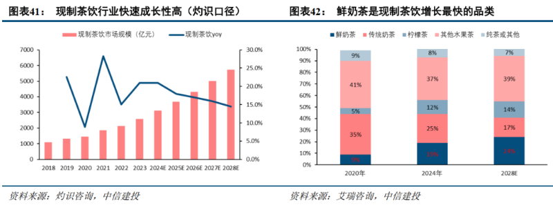 在现制饮品赛道,2024年至2028年现制茶饮与咖啡市场规模预计复合增长率分别达15.8%和18.5%。奶酪、黄油等成分正成为生酪拿铁、黄油拿铁等战略单品,渗透潜力巨大。