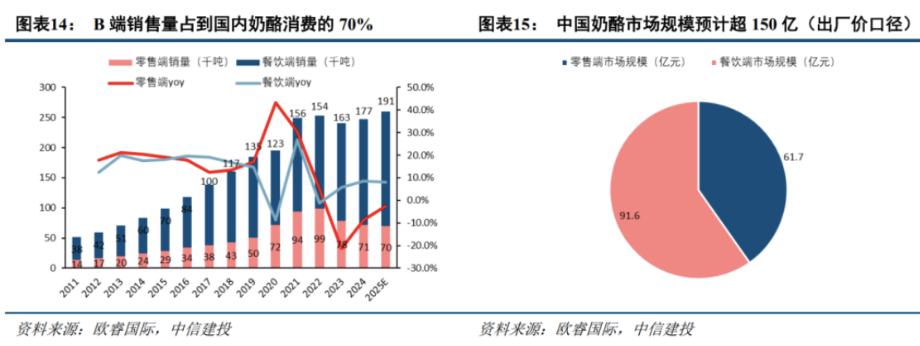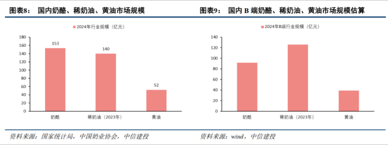 中信建投指出,奶酪、稀奶油、黄油B端市场规模已超260亿元,烘焙、现制饮品、西式快餐等高景气赛道持续拉动乳品深加工需求。乳品作为风味创新的重要载体,正被广泛应用于产品升级中。