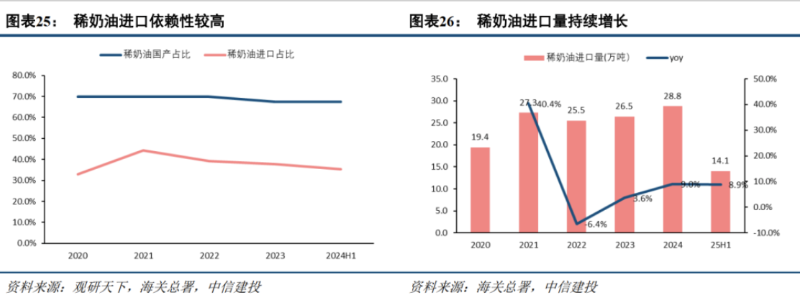 稀奶油方面,传统乳企与烘焙原料供应商各自拥有原料与研发优势,健康化趋势推动动物奶油替代,降本增效诉求提升国产占比。2026年新国标实施后,B端客户对供应链稳定性的要求将利好国内头部品牌。