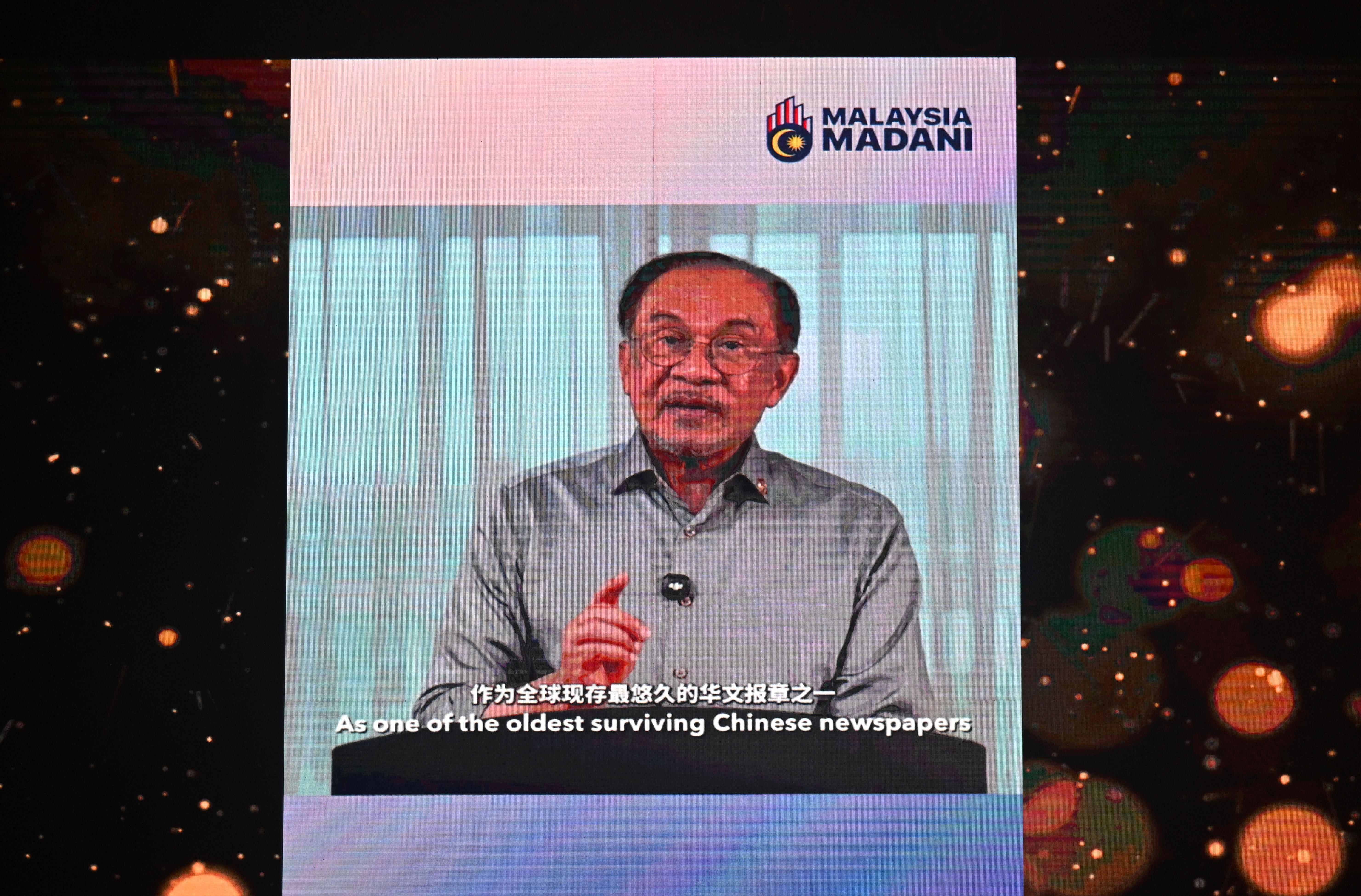 会上播放首相拿督斯里安华在“第58届世界中文报业协会年会”的献词视频。