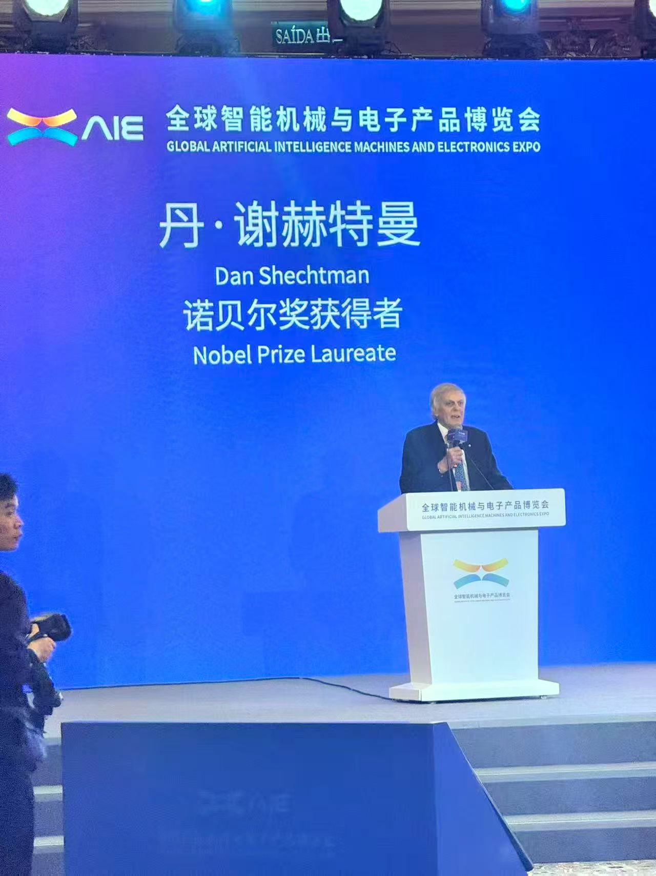 诺贝尔奖得主丹·谢赫特曼在论坛主旨演讲中,结合自身科研经历,分享了基础科学突破与智能产业应用的深度融合路径,强调跨学科、跨地域合作对技术创新的关键意义,并提出「国际基础科学联合实验室」架构行动方案:采用「基础研究+产业预订」模式推动成果转化。