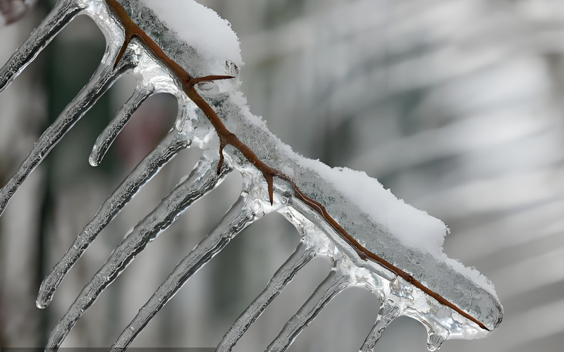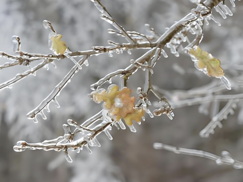 冻雨过后一般会形成雨凇或雾凇景观,但二者有区别。冻雨是特殊降雨和天气现象,雨凇是冻雨的结果。雨凇附着在电线、杆塔等上,会因重量骤增导致线路断裂、供电中断,还会压弯树木枝干,破坏植被并引发坠物风险,对公众安全与基础设施造成直接威胁。由于形成机制和结构差异,雨凇造成灾害的可能性与程度远超雾凇。高纬度和高海拔山区雨凇常见,雾凇密度小、重量轻,对电线、树木破坏性小。
