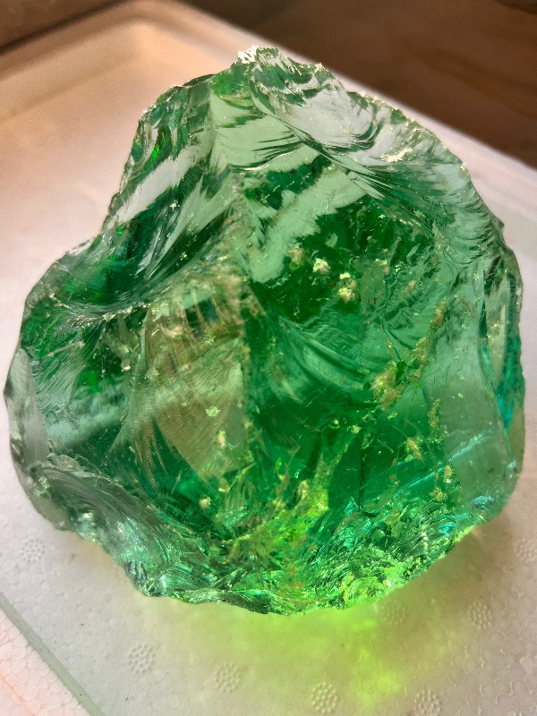 玻璃陨石的价值不仅体现在科研领域,在收藏市场也备受瞩目。品质是决定玻璃陨石价值的重要因素之一,品质好的玻璃陨石在国际市场上价值不菲,价格在几千美元到几万美元不等,而非常稀有的品种甚至可以达到一二十万每克,不过真正成交出手的却寥寥无几。例如,西格马·波尔克西伯利亚玻璃陨石,创作于1988年,尺寸为300.7*223.8cm,市场估价高达1.3亿到3亿元左右,堪称玻璃陨石中的“天价明星”。