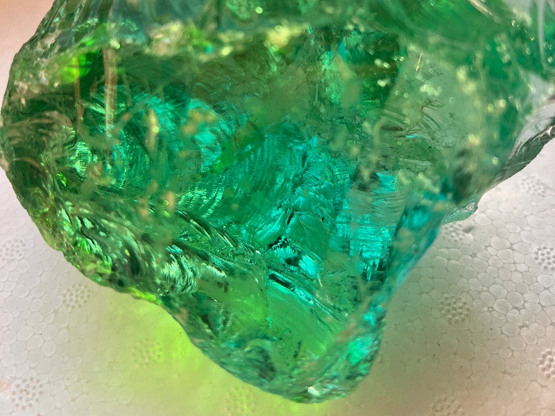 在微观世界里,玻璃陨石也留下了天外起源的线索。通过显微镜观察,玻璃陨石内部可见大小不一的气泡、雏晶以及陨石球粒,部分标本甚至含有微量的陨石成分,这些微观特征是地球岩石所不具备的,为它的天外身份提供了有力证据。