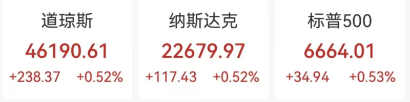 美国股市三大主要指数集体收涨。其中,道琼斯工业平均指数上涨0.52%,标准普尔500指数攀升0.53%,纳斯达克综合指数也上涨了0.52%。本周以来,美股市场呈现出震荡反弹的态势,道指、标普500指数和纳指分别累计上涨1.56%、1.70%和2.14%。