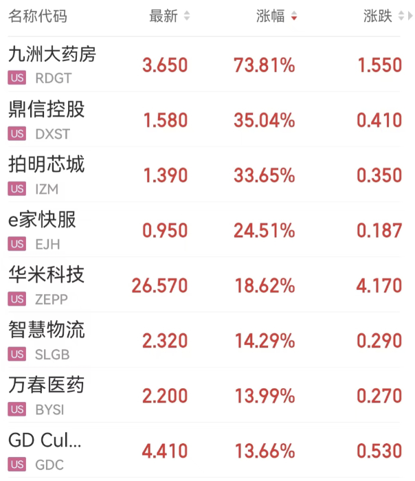 热门中概股的表现也是涨跌不一。纳斯达克中国金龙指数收跌0.06%,小鹏汽车涨幅超7%,网易、理想汽车涨幅超1%,阿里巴巴跌幅超3%,哔哩哔哩、蔚来跌幅超1%。此外,九州大药房涨幅达73.81%,鼎信控股涨幅为35.04%,华米科技涨幅为18.62%。