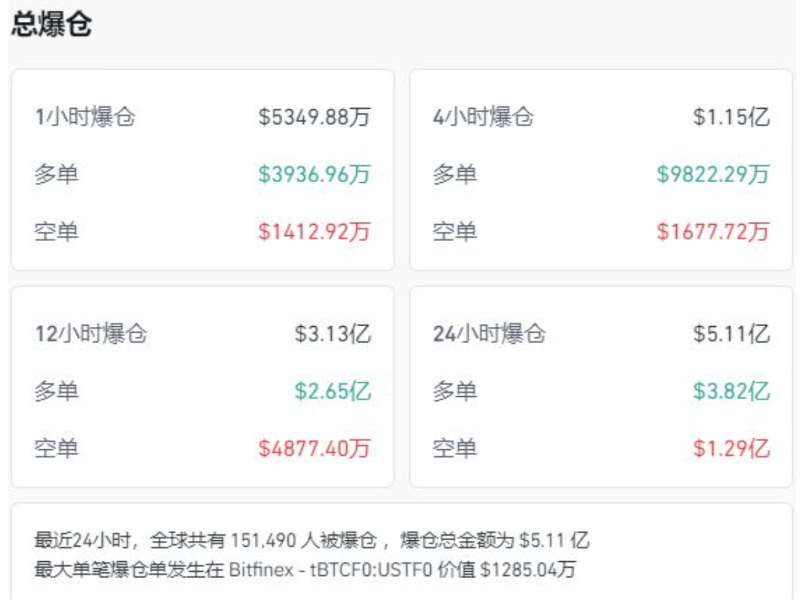 在期货市场方面,富时A50期指连续夜盘收涨0.07%,报收于15354点。国际油价在11月11日呈现上涨态势。截至当天收盘,纽约商品交易所12月交货的轻质原油期货价格上涨91美分,收于每桶61.04美元,涨幅为1.51%;1月交货的伦敦布伦特原油期货价格上涨1.10美元,收于每桶65.16美元,涨幅为1.72%。现货黄金盘中一度跌穿4100美元关口。比特币跌幅超3%,数据显示,最近24小时,加密货币全网共有151465人被爆仓,爆仓总金额为5.11亿美元(约合人民币36亿元)。