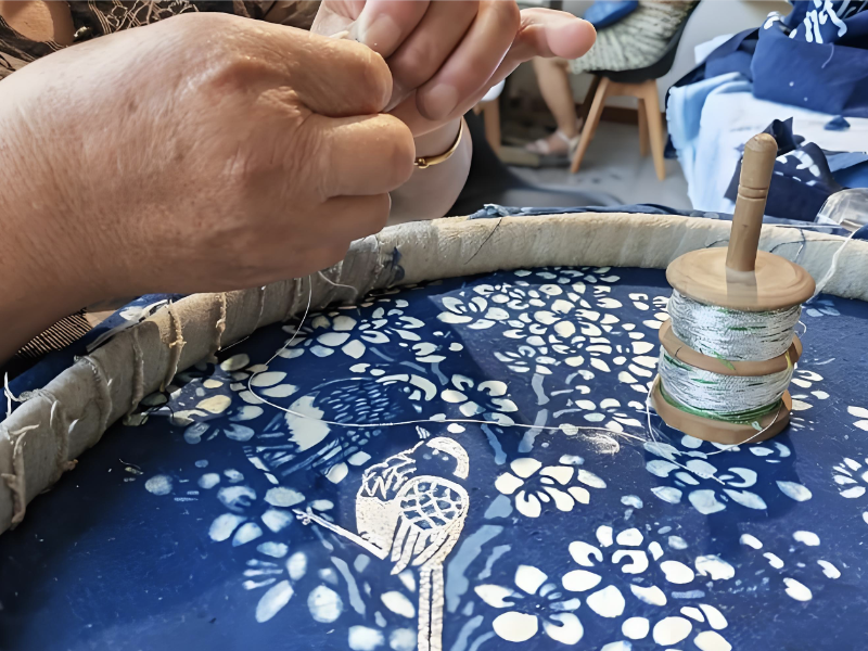 林栖三十六院的目标是构建以蓝印花布为核心的完整文旅生态,实现一二三产有机融合。一产打造有机稻田、茶园;二产建设非遗工坊、文化空间;三产通过主题民宿、非遗研学深度游等实现综合价值转化。为此,团队重塑空间,联动5个村庄改造350多间老屋;推动产品创新,联合年轻设计师开发文创产品;激活村民,成立“她工坊”带动闲置女性劳动力就业,实现人均年增收1万元。郭云玉表示,非遗保护传承是一场充满创造力的乡村振兴实践,秀的是文化自信、生活美学与发展可能。