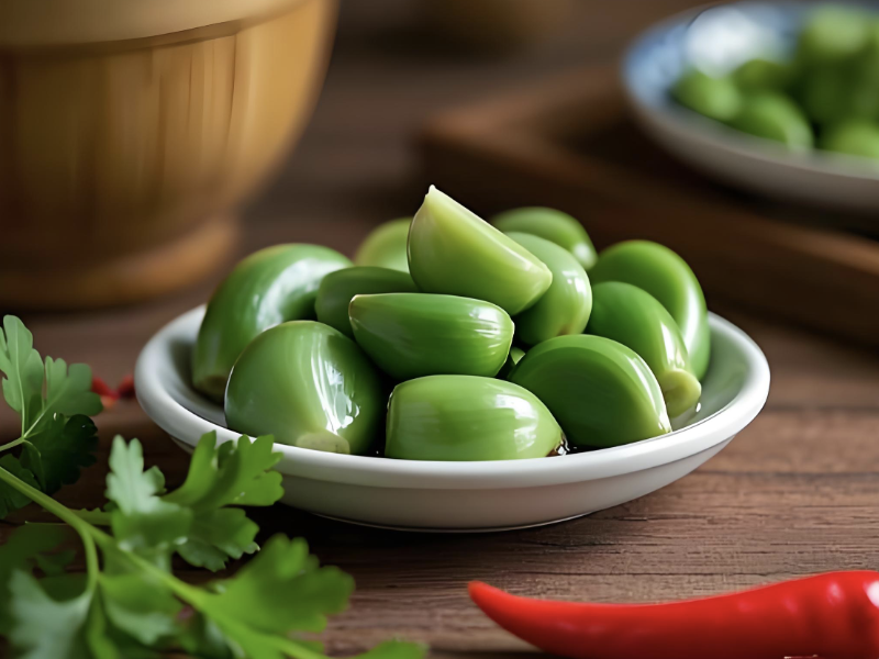 在北方地区,泡腊八蒜是一道独特的风景。人们将紫皮蒜仔细剥皮后,放入醋中浸泡。随着时间的悄然流逝,到了除夕启封之时,原本洁白的蒜瓣变得翠绿如玉,醋也变得酸辣可口。当热气腾腾的饺子蘸上这独特的腊八醋,别有一番风味,为节日增添了浓郁的氛围。