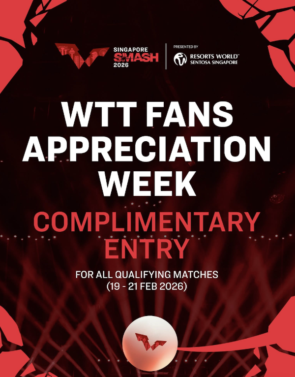 值得一提的是,资格赛阶段的部分场次将免费向公众开放,官方将这一系列精彩活动命名为“球迷周”(Fans Appreciation Week)。从本月19日至21日,持有WTT粉丝身份的球迷即可免费进场观看比赛,不过名额有限,先到先得哦!