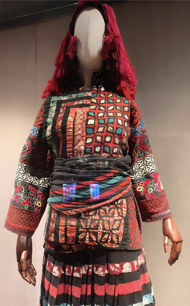 协同机制破局:标准化与品牌化激活产业动能针对传统绣娘“单打独斗”难以对接市场的痛点,楚雄州构建“企业+合作社+绣坊+绣娘”协同机制,推行“零成本、零风险、稳收益”的分红模式,形成“一人带一户、一户带一片”的辐射效应。2024年,全国首个彝绣生产技术团体标准发布,“楚雄彝绣”加速推进马德里商标国际注册,并孵化“楚雄时装周”品牌。通过与妈祖文化、国际运动品牌跨界联名,彝绣文创产品已覆盖45个国家和地区。新成昆铁路“楚雄彝绣”专列的开通,更让千年非遗搭乘高铁走向全国。