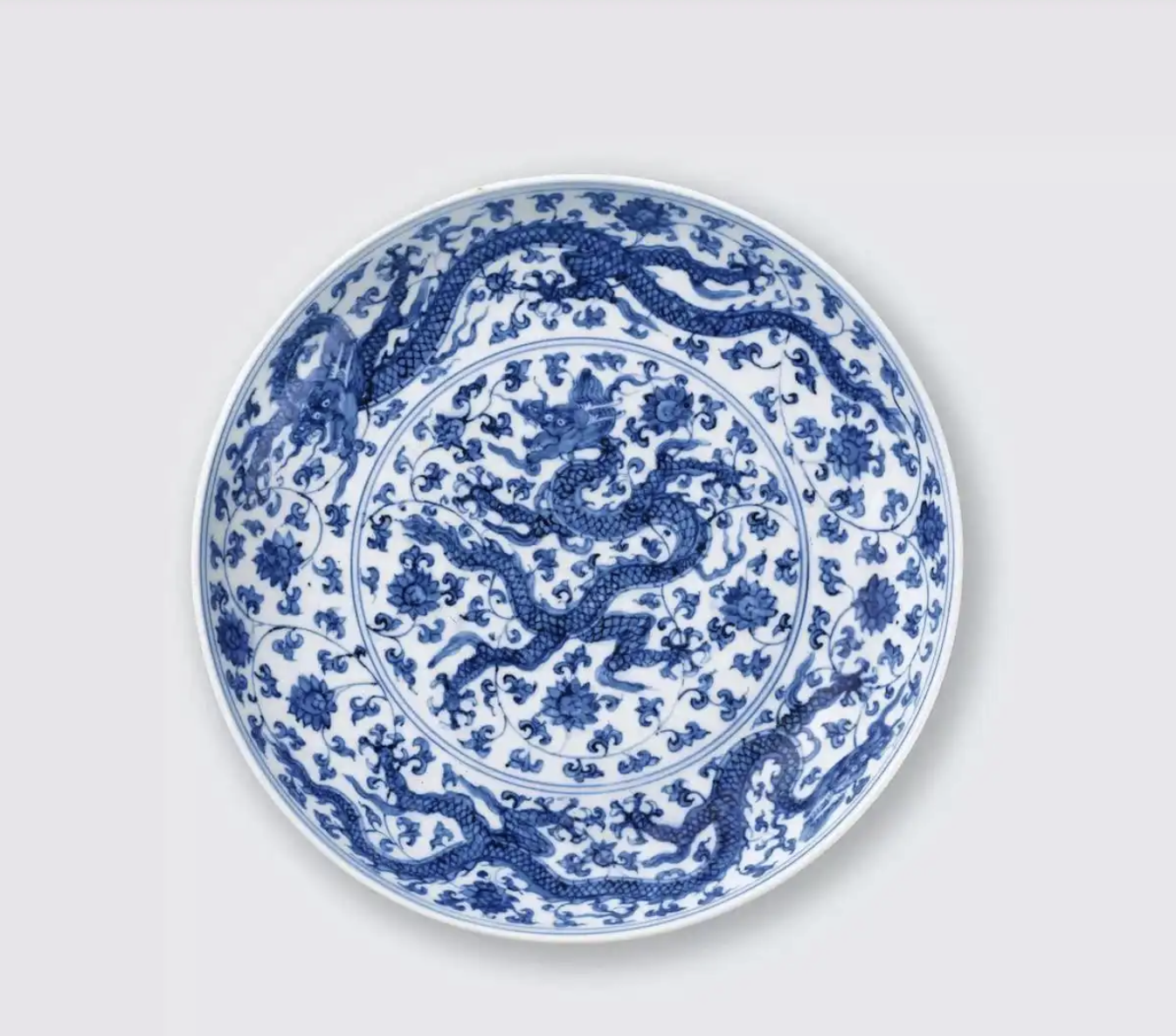 正德青花穿花龙纹盘:龙舞花间,尽显正德风华