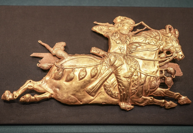 首都博物馆策展人赵婧介绍道,此次展览以“黄金如缕,互鉴为桥”为主题,别具匠心。通过系统梳理黄金在欧亚草原、中原地区、青藏高原等不同地域的生产、使用与传播历程,深入揭示了金器作为文明交流与融合的重要见证者,所承载的深厚历史意义。它就像一座桥梁,连接起了不同地域、不同民族的文化,让我们得以窥见古代文明交流互鉴的壮丽图景。