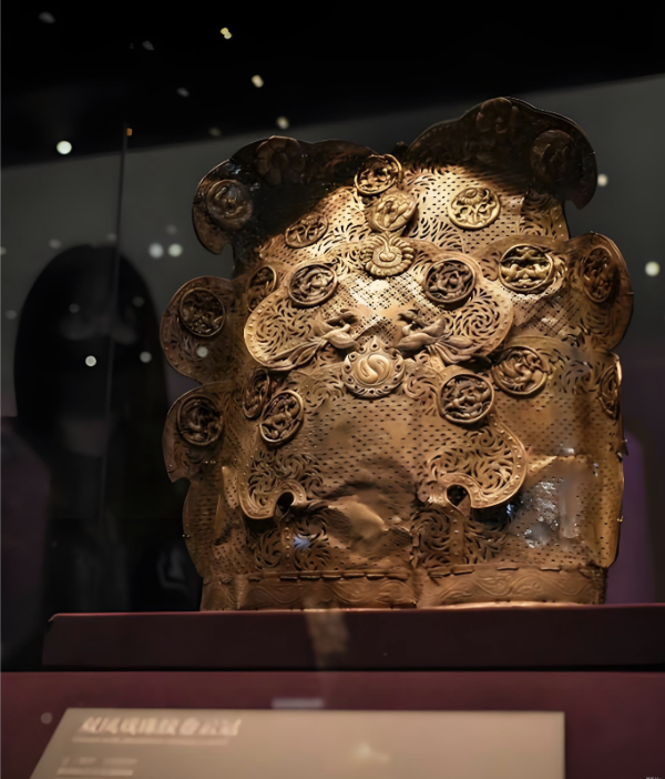 此外,展览还着重通过文物展示了中国金器工艺技术的发展历程。从早期的锤揲、浇铸等基础工艺,到中后期复杂的鎏金、金珠与宝石镶嵌等精湛技艺,观众不仅能欣赏到金器的艺术之美,更能深刻领略古代工匠的高超技艺与无穷智慧。