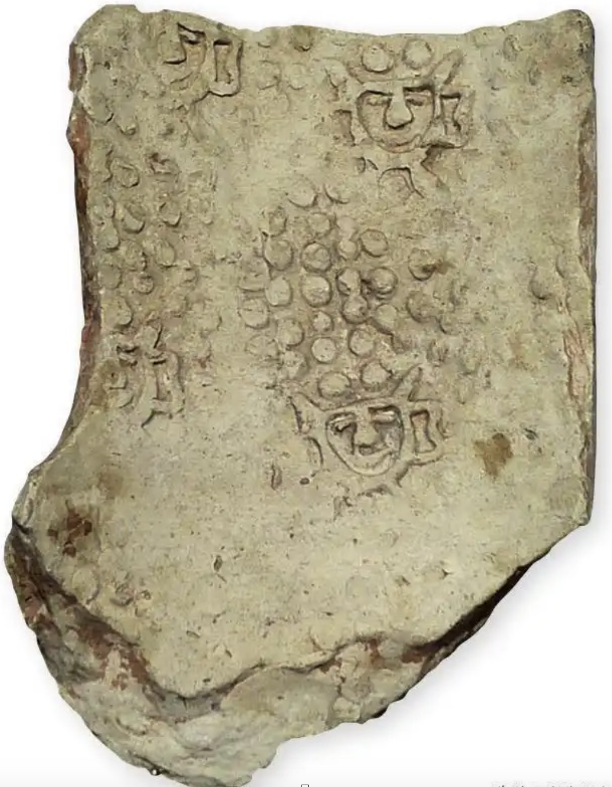 1997 年发现的广州南越国御苑遗址中,出土众多印字板瓦,同时还有不少图案瓦引人注目。其中一个人面纹图案与众不同,此人面长着一双垂到肩膀的大耳朵。瓦上的文字图案是陶工制作时拍上去的。吴凌云在《南越文物研究三题》中指出,制陶工匠“按照籍贯来分组干活”,这种大耳人面纹图案是“不会写字的工匠拍上去的,也应该是一种表示籍贯的方式”,这个大耳人面就是“儋耳”。