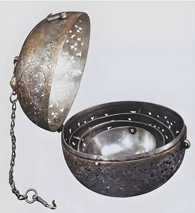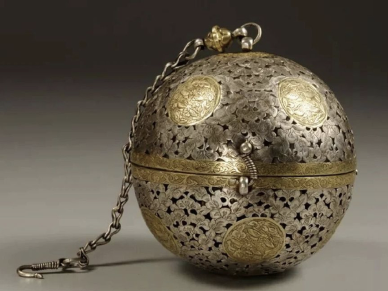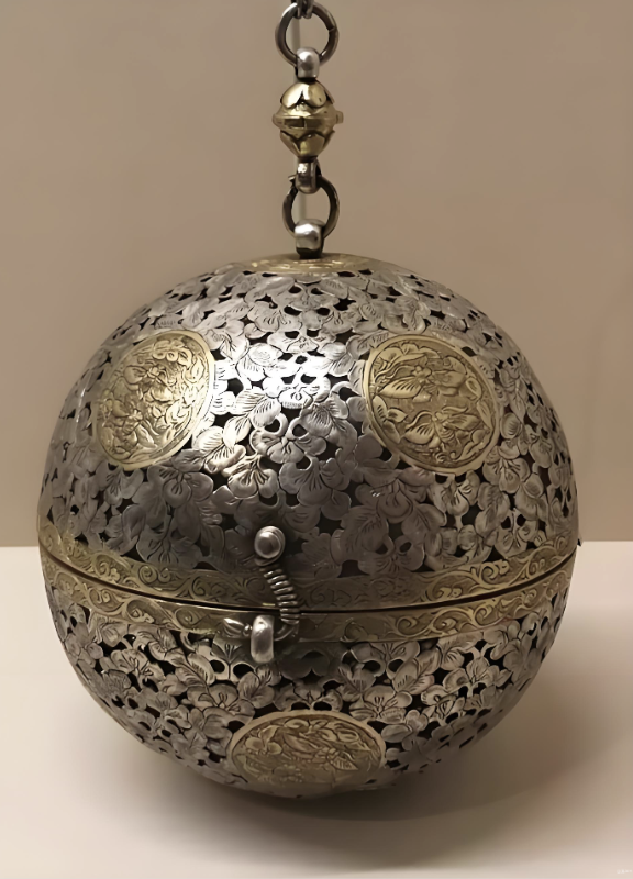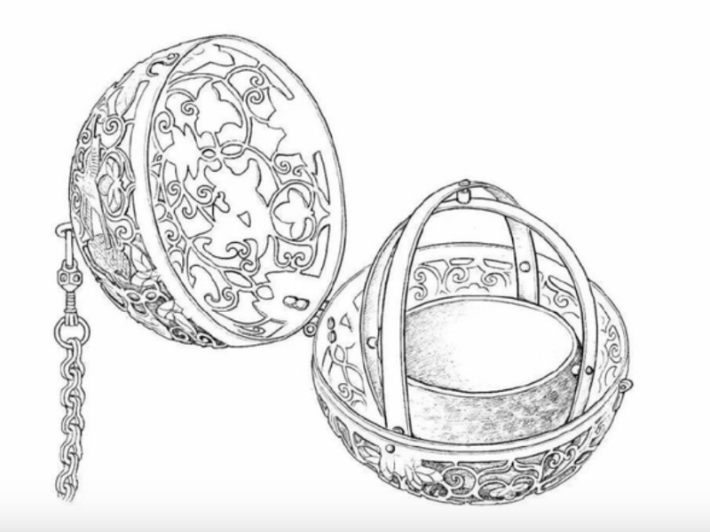 如此精美的香囊究竟该如何使用呢?使用时,只需打开香囊,将点燃的香料放置在半圆小碗中,然后合上香囊,香气便会从镂空处袅袅散出。大香囊可以悬挂于室内或车中,也可以手捧;小香囊则便于随身携带。它不仅能起到熏香的作用,还能在冬日里为人们带来温暖,堪称当时的大唐冬日“暖手宝”。