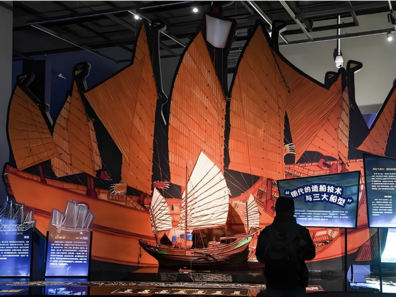 沉船遗址位于海南岛东南方向海域,距三亚市约150公里。其中,“南海西北陆坡一号沉船遗址”发现多个隔舱内堆积着大量船货,包括瓷器、金属器等。根据出水器物的风格,推测该沉船年代在明正德时期(1506 - 1521年)。另一处“南海西北陆坡二号沉船遗址”则由大量原木及少量陶瓷器构成堆积,推测年代为明弘治时期(1488 - 1505年)。“发现沉船、走进沉船、揭秘沉船”构成了展览的三大核心部分。这两艘一来一回的航船,宛如海上丝绸之路的使者,见证着这条古老贸易通道上的双向交流。