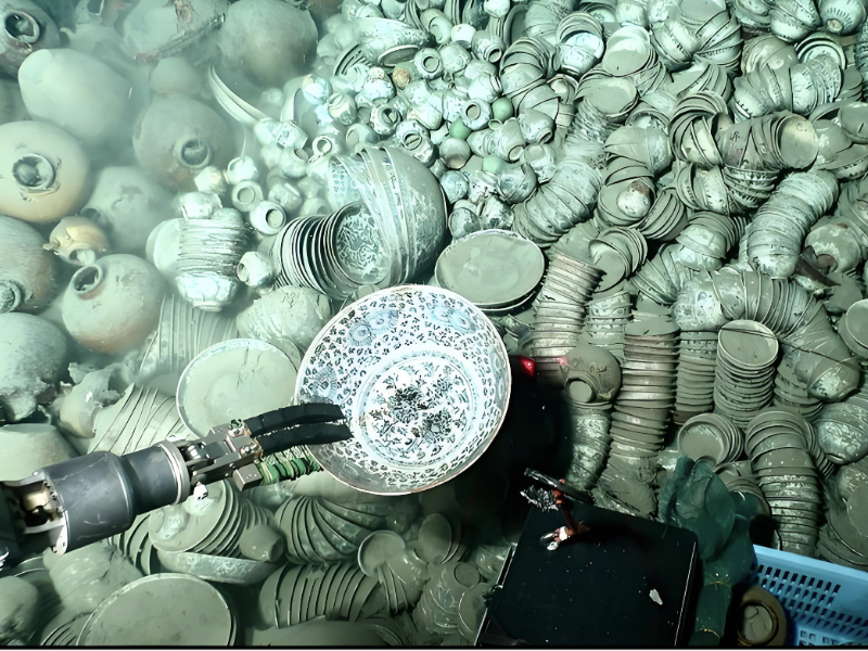 2022年10月,中国科学院深海科学与工程研究所在南海西北陆坡约1500米深的区域开展航次工作时,意外发现两处明代沉船遗址。此次展览以“探索两艘沉船”为叙事线索,带领观众走进南海深海考古的重要发现。这两处遗址保存相对完好,文物数量惊人,生动再现了明代中期海上贸易的繁荣景象,还成功入选“2023年度全国十大考古新发现”。
