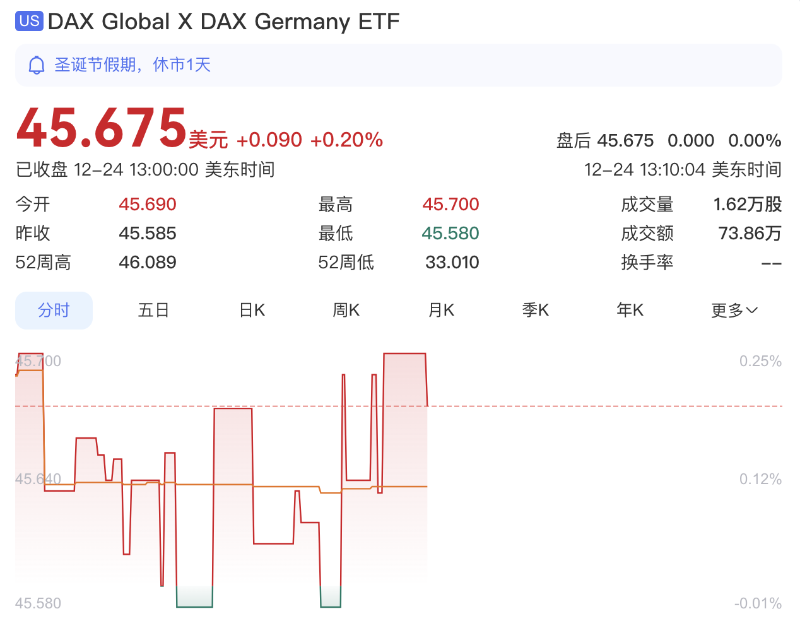 截至12月23日,DAX指数报收于24340.06点,虽受圣诞假期影响成交量较低,但依然保持在24000点以上。作为追踪法兰克福证券交易所40家最大上市公司的指数,DAX涵盖了约80%的市值,其全年上涨超20%的表现,反映出市场对德国企业基本面的信心。
