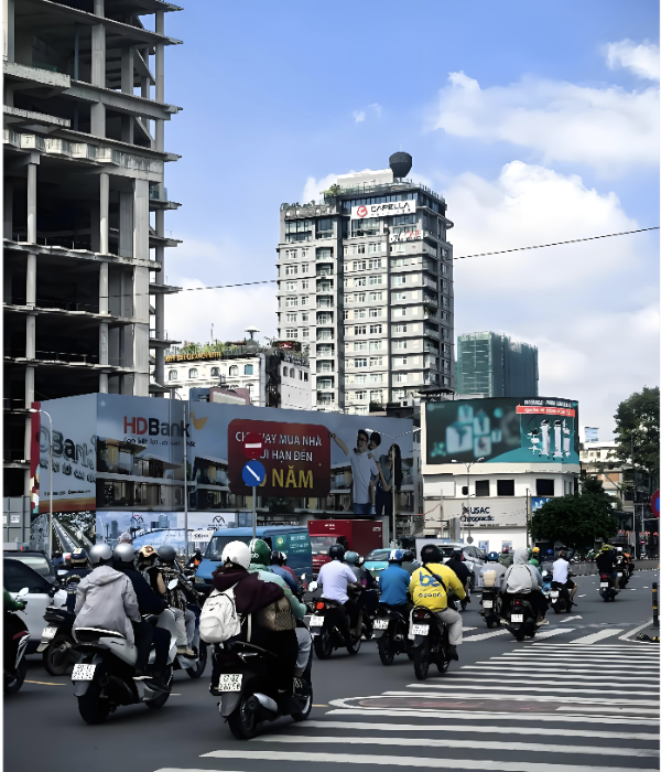 全身心享受城市美景的同时,每位游客都会经历一次令人难忘的“街头冒险”--在胡志明市过马路的经历。这份冒险的感受至今仍让笔者兴奋。那日傍晚,他逛完热闹的滨城市场后,饥肠辘辘,决定前往一家当地人推荐的小餐馆用餐。餐厅就在马路对面,可当他站在路边,面对眼前如潮水般涌动的摩托车流时,顿时感到不知所措。