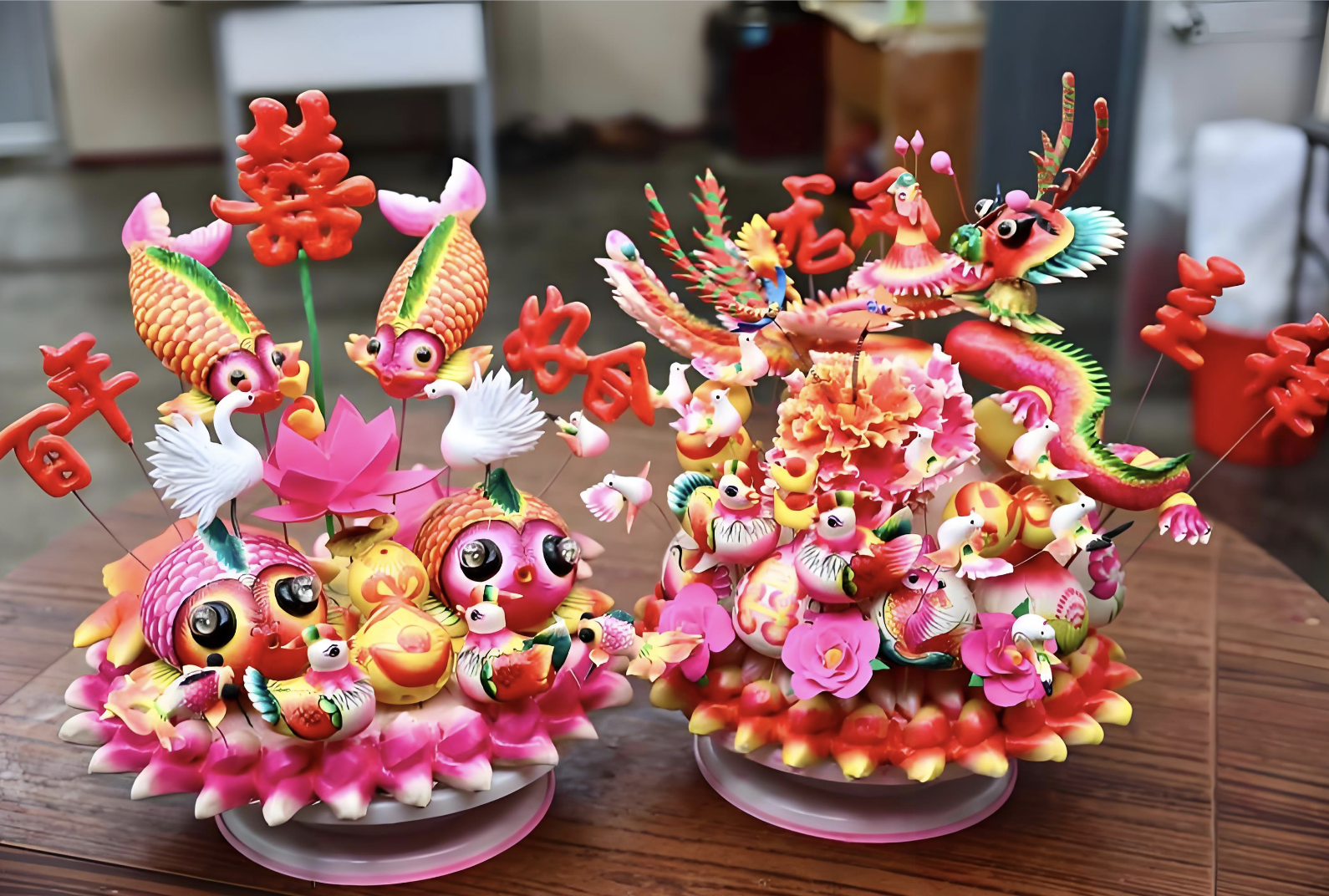 从业30余载,林荣涛不仅走进高校授课,更培养出400余名徒弟。如今,儿子林鹏接过接力棒,成为青年传承人。春节前夕,工作室里鲜红的醒狮、金黄的葫芦、粉白的寿桃摆满货架,本地人预订年货、游客寻味而来,花饽饽的香气从齐鲁大地飘向五湖四海。“面团里藏着中国人的生活哲学。”林荣涛说。从田间地头到世界餐桌,胶东花饽饽以鲜活的姿态,讲述着非遗传承的故事,让千年年味在创新中生生不息。