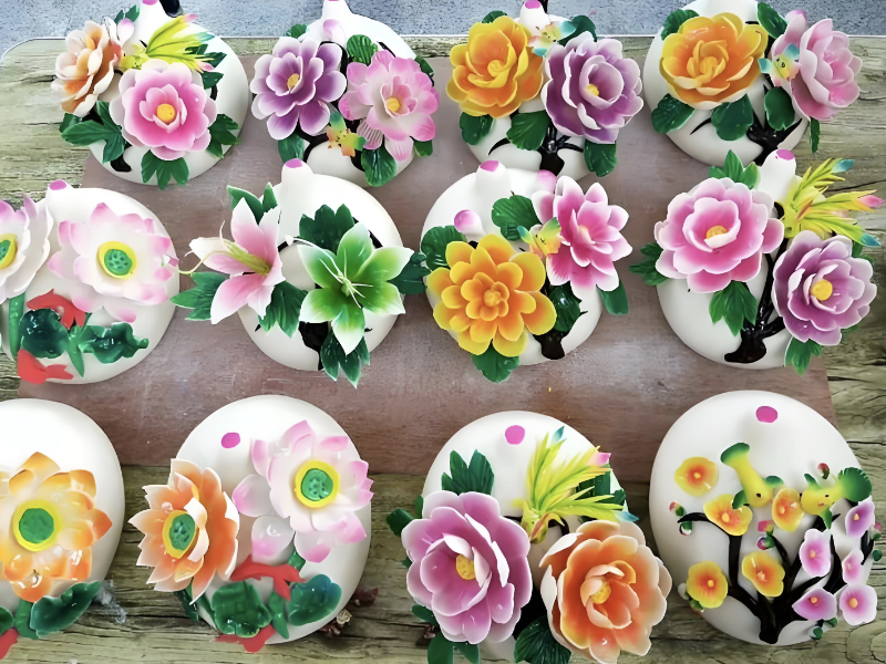 作为省级非遗传承人,林荣涛自幼随母亲学艺,深谙传统之精髓,更勇于突破。面对“神仙引子”(天然发酵剂)工艺复杂、难以量产的难题,他改良工艺,在保留传统风味的同时,推动花饽饽从家庭作坊走向规模化生产。如今,他的工作室已研发出7大系列、100余个品种,既有枣饽饽、圣虫等经典款,也有融合现代审美的葫芦、寿桃造型,甚至远销海外。